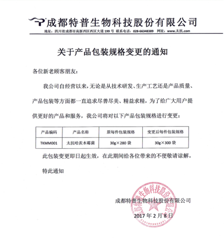 太抗?哈茨木霉菌包裝變更通知